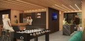 Kombinace krytých, stíněných, chráněných a otevřených prostor přetvoří obytnou a wellness budovu ještě jedinečnější. O plné načerpání energie se kromě venkovní jídelny postará také vířivka na terase. V jedinečném přístřešku je nainstalováno náladové osvětlení LED s ochranou IP a zvukový systém. Další možnosti sportovního vyžití pro děti i dospělé poskytuje hřiště na padbol a bazén vedle budovy. Navzdory velkým rozměrům má budova optimální poměry a díky použití přírodních materiálů zapadá do okolí. Estetický design vyžadoval pečlivou péči o detaily.